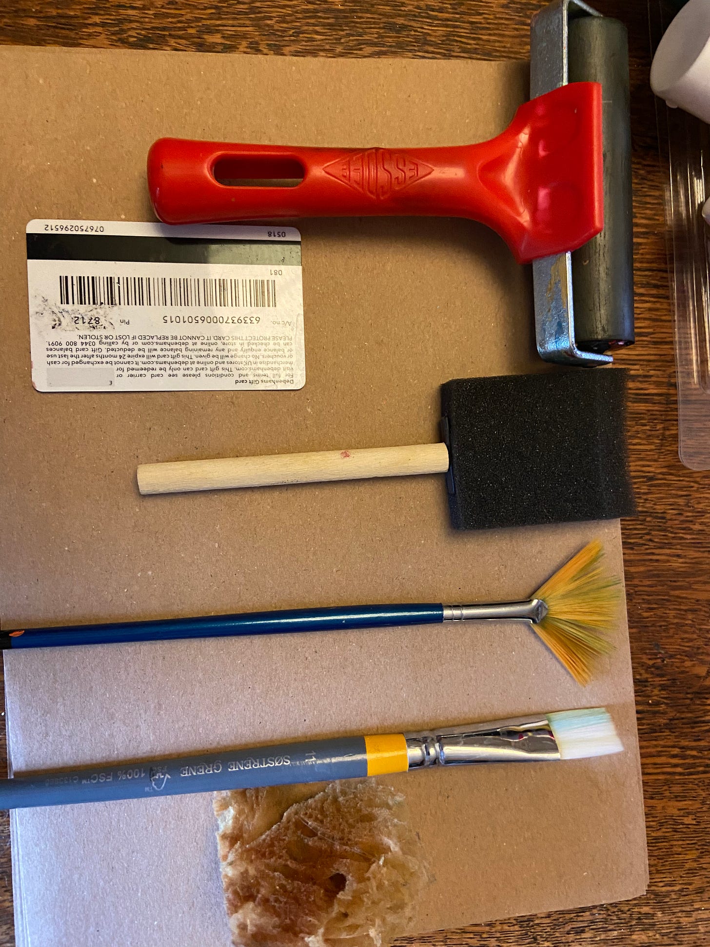 I’ve not been using a Gelli plate for my artwork for very long, maybe about two years now. I wasn’t taught how to use it, if anything I think that was for the best. Somehow through trial and error I have developed my own techniques and have settled on my own selection of go-to tools.